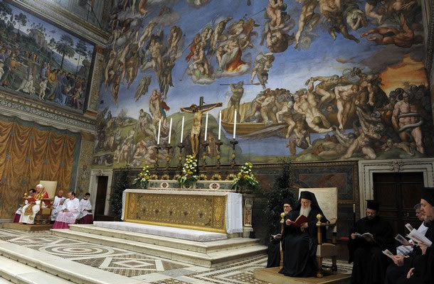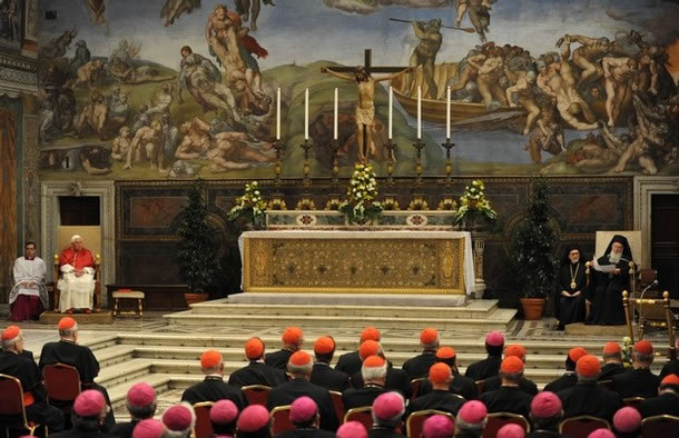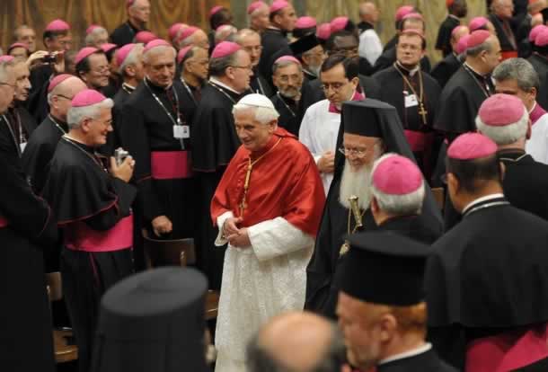 No dia 18 de outubro de 2008, às 17 horas, na Capela Sistina, por ocasião da participação do Patriarca Ecumênico, na XII Assembléia Geral Ordinária do Sínodo dos Bispos, S. Santidade Bento XVI presidiu a celebração das Primeiras Vésperas do XXIX domingo do Tempo Comum ‘per annum’. Dela participaram S. Santidade Bartolomeu I, o Patriarca Ecumênico de Constantinopla, os membros da Presidência do Sínodo dos Bispos, 60 Cardeais e Patriarcas latinos, 170 Arcebispos e Bispos, 200 presbíteros, religiosos e leigos participantes da XII Assembléia Geral Ordinária dos Bispos. Traduzimos e publicamos o Pronunciamento que S. S. Bartolomeu I fez nesta ocasião histórica para toda a Igreja.