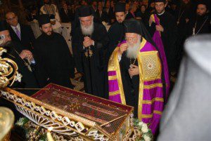 Drama, Grécia, 03 novembro 2008 (Ortodoxia.org) – S. S. Bartolomeu I, Patriarca Ecumênico de Constantinopla (foto ao lado), durante a sua visita à cidade de Drama, no Norte da Grécia, onde concelebrou no último domingo com o Arcebispo Ierônimos de Atenas e Toda a Grécia a canonização de um novo santo para a Igreja Ortodoxa, Karslides Jorge (1901-1959).