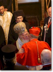Constantinopla, Turquia, 02 dezembro 2008 (Ortodoxia.org) – Em 30 de novembro último, por ocasião da comemoração do Protocletos (o Primeiro Chamado) Apóstolo Santo André, o Patriarcado Ecumênico de Constantinopla celebrou com solenidadede a festa de seu Patrono. A Divina Liturgia teve lugar na Igreja Patriarcal São Jorge (Agios Georgios) presidida por S. Santidade Bartolomeu I e com a participação dos veneráveis membros do Santo Sínodo do Patriarcado Ecumênico. Há que se destacar a presença de uma comitiva de representantes da Igreja Católica Romana liderada pelo Cardeal Walter Kasper. No final da Divina Liturgia o Cardeal fez a apresentação da mensagem do Papa Bento XVI ao Patriarca Ecumênico Bartolomeu I. A celebração foi concluída com uma recepção dada pelo Patriarcado Ecumênico, e que contou com a presença da comitiva de delegados do Vaticano, além de representantes do corpo diplomático.