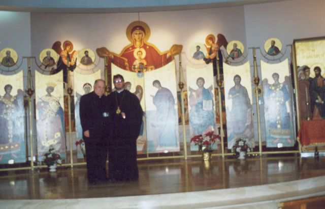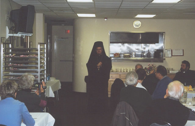 Dia 23 de fevereiro visitamos a Paróquia Grega Ortodoxa Santos Constantino e Helena em Newport News – Virgínia, onde fomos acolhidos pelo Revmo. Pe. George Chioros, pároco. Durante jantar de confraternização com a Comunidade Grega do qual participaram membros do clero grego e antioqueno, Mr. Michael Anastasiou falou sobre a sua maravilhosa experiência missionária que viveu nas 3 semanas que passou trabalhando no Sul Brasil, como membro do Grupo Missionário da OCMC que visitou as paróquias e comunidades de nossa Eparquia em outubro/novembro de 2004. Destacou os contatos com as nossas crianças e com a comunidade presidiária do Presídio de alta segurança de Ponta Grossa – PR, onde nosso seminarista, Abraão Borges, desenvolve um trabalho humanitário e espiritual há cerca de dois anos. A Srta. Stephania Gianulis também expressou, muito emocionada, sua própria experiência quando esteve em nosso país em 2001 em viagem missionária. Dom Jeremias falou aos presentes dos desafios, projetos e avanços da Ortodoxia entre os brasileiros.