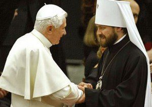 CASTEL GANDOLFO, 18 set (RV) – Bento XVI recebeu hoje, sexta-feira, em Castel Gandolfo, o presidente do Departamento das Relações Eclesiásticas Exteriores do Patriarcado de Moscou, o arcebispo Hilarion. Trata-se da primeira visita a Roma do arcebispo ortodoxo, após sua nomeação ao atual encargo. O prelado ortodoxo manteve ontem um colóquio com o presidente do Pontifício Conselho para a Promoção da Unidade dos Cristãos, Cardeal Walter Kasper. Após o encontro, o purpurado alemão reiterou que são boas as relações entre Igreja Católica e Patriarcado de Moscou. As duas partes se encontrarão em outubro próximo na ilha de Chipre – no leste do mar Mediterrâneo – por ocasião da sessão plenária da Comissão mista internacional para o diálogo teológico entre a Igreja Católica e a Igreja Ortodoxa em seu conjunto: no centro da plenária encontra-se o tema crucial do papel do bispo de Roma na Igreja presente no mundo inteiro. Ontem à tarde, o arcebispo ortodoxo visitou a Comunidade romana de Santo Egidio participando da oração na Basílica de Santa Maria no Trastevere. Ao término do rito, Hilarion falou sobre a necessidade do testemunho comum dos cristãos “num mundo descristianizado, numa época que alguém erroneamente a define como pós-cristã” – disse ele.