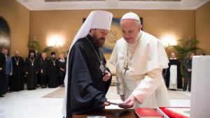 Papa Francisco de Roma recebeu o “ministro das Relações Exteriores” de Cirillo, o Metropolita Hilarion, que anunciou a chegada em Roma no outono, de um ícone, tal e como as relíquias de São Nicolau fez um “tour” pela Rússia no ano passado.