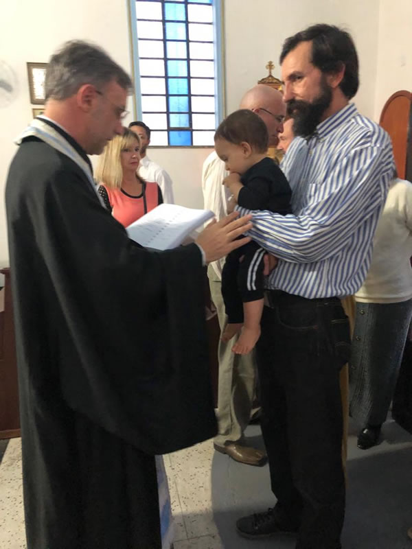 S. E. R. Dom TARASIOS, Arcebispo Metropolitano de Buenos Aires, Primaz e Exarca da América do Sul – Patriarcado Ecumênico, acompanhado de sua comitiva, visitou a cidade de Porto Alegre (RS), nas comemorações da Festa Patronal da Paróquia Ortodoxa Grega dos Santos Apóstolos, de 28 de junho a 1° de julho de 2019. Na sexta-feira, dia 28, foi recepcionado no aeroporto Internacional Salgado Filho pelo Rev.mo Pe. Pavlos, Hieromonge, pelo Sr. Mário Sideres e Sra Helene Vardaramatos, Presidente e Vice-Presidente, respectivamente, da Sociedade Helênica de Porto Alegre e pelo Psaltis Dr. Dimitrios Samios, então eleito Archonte Patriarcal. No sábado, dia 29 de junho, festa do Santos Apóstolos Pedro e Paulo, a Sra Helene Vardaramatos recebeu em sua residência a Diretoria da Sociedade Helênica, o Presidente da Federação Helênica e da Coletividade Helênica de São Paulo, Sr. Stayros Kyriopoulos, familiares e amigos para um almoço em honra ao Arcebispo Tarasios e sua comitiva: Pe. Pavlos e o Leitor Diego Armando Lengruber. Às 17h00, S. Eminência, assistido pelo clero, presidiu o Ofício do Batismo de Achilles Hirtz Trein Efremides, filho de Pedro Oleksiuk Efremides e de Raquel Hirtz Trein. Às 18h00, teve início as celebrações dos Ofícios de Vésperas Pontificais com Artoclasia. No domingo, 30 de junho, às 08h30, S. Eminência presidiu o Ofício de Matinas e às 10h00, a Solene e Festiva Divina Liturgia Pontifical, durante a qual o Sr. Dr. Dimitrios Sâmios foi oficialmente honrado com o título de Arconte de S. Santidade, o Patriarca Ecumênico Bartolomeu I. Em seguida, Pe. Pavlos, hieromonge foi agraciado pelo Arcebispo Tarasios com uma cruz peitoral, pela comemoração de sua data onomástica, celebrada no dia anterior. Por fim, o Arcebispo presidiu um Mnimósynon, recordando todos os falecidos daquela comunidade paroquial. Encerradas as atividades litúrgicas, todos os presentes se dirigiram ao Salão de Festas para um almoço festivo, animado por apresentações culturais de danças e outras homenagens. À noite, a família do Sr. Dr. Dimítrios Samios, Archonte Patriarcal, ofereceu ao Arcebispo e convidados um jantar de agradecimento.