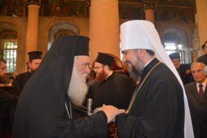 A história de nossas duas antigas nações, a Grécia e a Ucrânia, inclui muitas páginas compartilhadas de amizade e cooperação. O estabelecimento de uma unidade eucarística plena e de relações oficiais entre as igrejas locais da Grécia e da Ucrânia é uma nova página que permanecerá para sempre ligada em nossa história e em nossos corações.