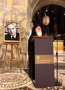 O arcebispo Anastasios de Tirana, Durrës e toda a Albânia recebeu o prêmio Klaus Hemmerle 2020 na Alemanha por sua contribuição aos esforços inter-religiosos de paz e harmonia. Durante uma cerimônia ecumênica com a participação de representantes da comunidade dos Focolares e do cardeal Kurt Koch, presidente do Pontifício Conselho para a Promoção da Unidade dos Cristãos (Igreja Católica Romana), o arcebispo Anastasios recebeu o prêmio na histórica Catedral de Aachen, na Alemanha em14 de fevereiro. O Movimento dos Focolares concede essa distinção a cada dois anos a personalidades internacionais que contribuíram para alcançar e entender comunidades com diferentes tradições culturais e religiosas. O Laudatio foi lido pelo cardeal Koch. Em seu discurso de agradecimento, o Arcebispo Anastasios abordou o tema “Coexistência pacífica em um mundo multirreligioso”. Bispos ortodoxos das igrejas alemãs também participaram da cerimônia. O prêmio foi criado em 2002 em nome do “construtor de pontes” espiritual Klaus Hemmerle (1929-1994), que foi Bispo de Aachen (1975-1994) e professor de Filosofia da Religião. A tradução alemã do livro do arcebispo Anastasios, “Missão aos passos de Cristo”, publicada recentemente com a ajuda da Universidade de Freiburg (Suíça), estava disponível para as mais de trezentas pessoas que participaram do evento.