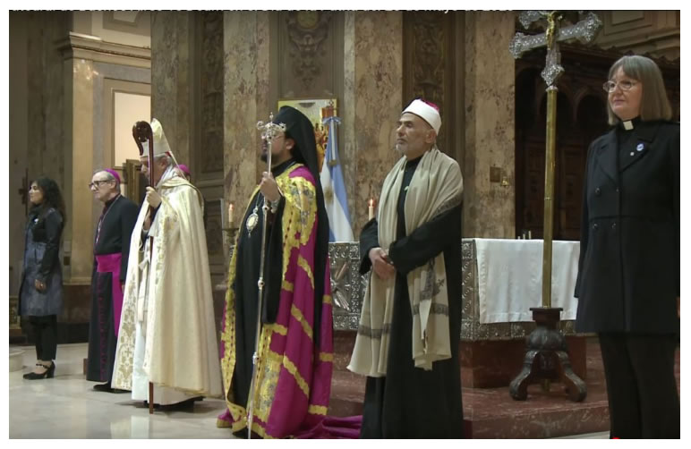 O culto terminou com os participantes cantando o Hino Nacional da Argentina.