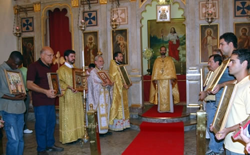 BUENOS AIRES, Argentina, 24 de fevereiro de 2010 [Fonte: www.ortodoxia.org] No último domingo, 21 de fevereiro, na Catedral da Dormição da Theotokos em Buenos Aires, foi celebrado com grandiosidade o «Domingo da Ortodoxia». A Divina Liturgia foi presidida pelo reverendíssimo arcebispo Tarasios, assistido pelo reverendíssimo arquimandrita Iosif Bosch e pelo reverendo Pe. Lucas Chypriades. A comunidade presente participou fervorosamente da procissão de «Veneração aos Ícones». Dentre os presentes estavam o presidente da diretoria da Associação de Mútuo Auxílio São Demétrio, o Sr. Costantinos Bergiris, o arconte e membro do Conselho Arquidiocesano, o Sr. Constantinos Kejagioglu, o Sr. Thomas Kutsukos, benfeitor fervoroso da Igreja, entre outros. Durante a celebração, o primaz e exarca da América do Sul anunciou a nomeação do arquimandrita Iosif Bosch como vigário geral da Arquidiocese Ortodoxa Grega de Buenos Aires e América do Sul e deão da Catedral da Dormição da Theotokos de Buenos Aires. O arquimandrita Bosch assumirá sua nova função a partir de 1º. de março deste ano.