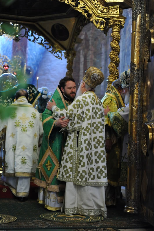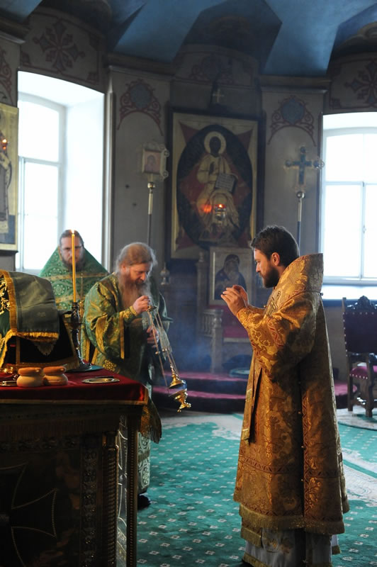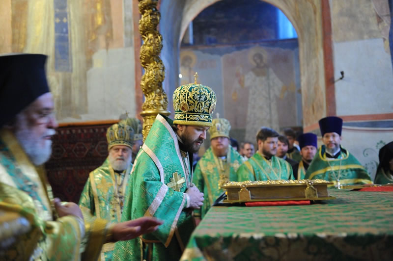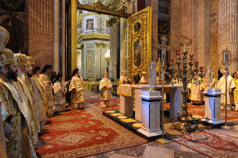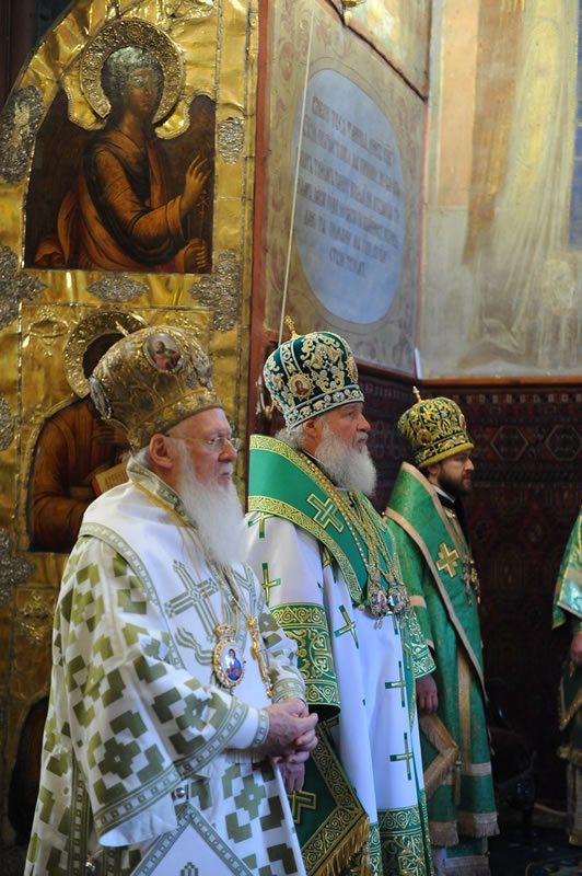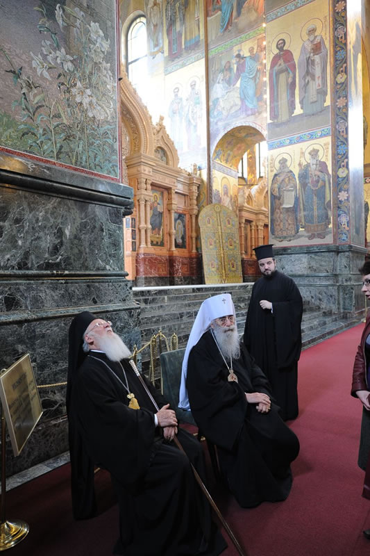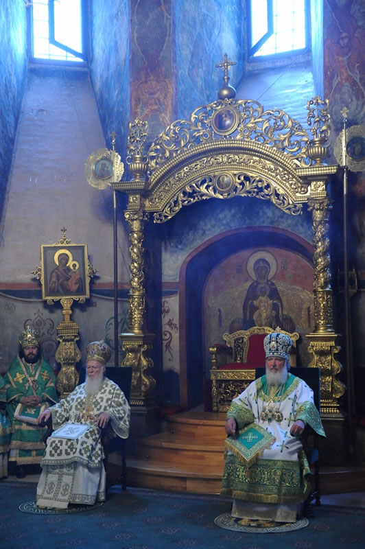 Na sexta-feira, 28, o chefe do Departamento de Relações Exteriores do Patriarcado de Moscou, Metropolita Dom Hilarion Volokolamsky, presidiu a Divina Liturgia na Catedral da Transfiguração do Monastério de Valaam, tendo como seus concelebrantes o Arcipreste Nikolai Balashov, [vice-presidente do Departamento] e os sacerdotes Igor Yakymchuk, George Kirindas e Michael Asmus. Durante a liturgia, o celebrante orou pelo Primaz da Ortodoxia e pelos membros da delegação que acompanhavam o Patriarca Ecumênico. Após a Celebração, Dom Hilarion agradeceu a visita do Patriarca Ecumênico àquele Monastério dizendo: «Este é um momento histórico, pois pela primeira vez, nestes muitos séculos de sua existência [este monastério] recebe a visita do Patriarca Ecumênico de Constantinopla». O Patriarca, por sua vez, ressaltou que quando soube que a agenda da visita à Rússia incluía o Monastério de Valaam, ficou “muito feliz e agradecido a Deus por conceder a oportunidade de conhecer a casa onde viveram muitos santos da Igreja».