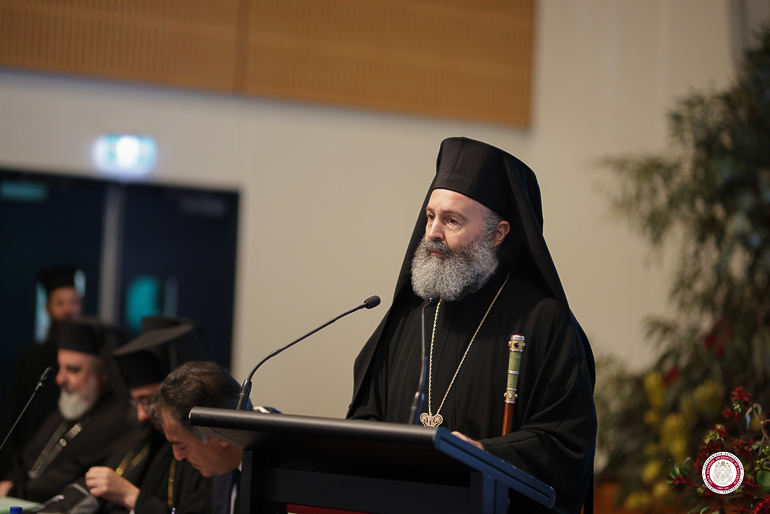 Foi particularmente emocionante a projeção de uma mensagem em vídeo do Patriarca Ecumênico, enquanto o Arcebispo. Makários referia-se à pessoa de Sua Santidade, por quem expressou seus sentimentos de gratidão pelo amor e confiança com que envolve a Sacra Arquidiocese da Austrália e a ele, pessoalmente. Recomendou a S. E o Metropolita Nikita que transmitisse os sentimentos filiais de amor e gratidão de toda a Igreja local.