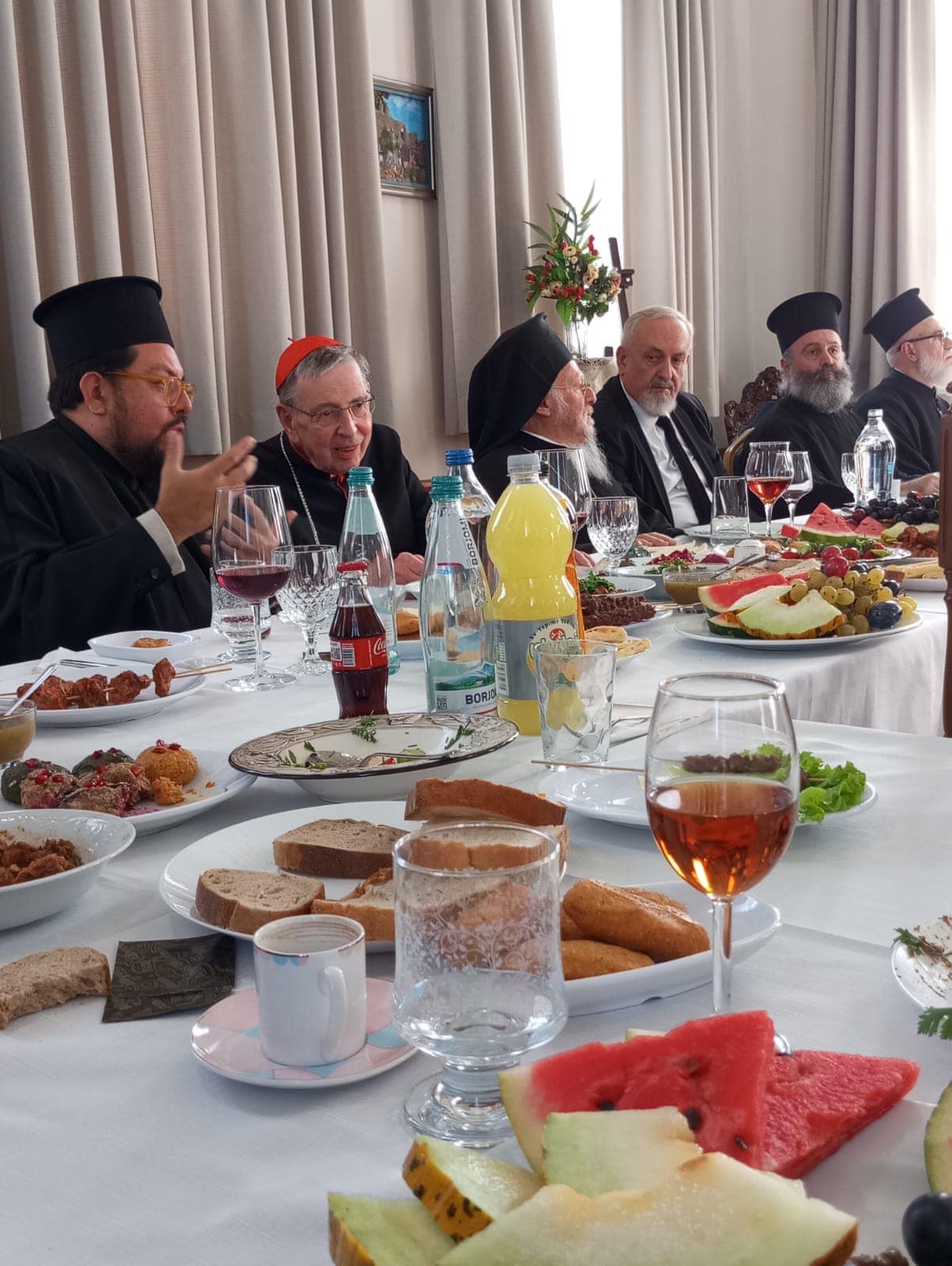 Depois da reunião, a paróquia ofereceu um almoço em honra de Sua Santidade, o Patriarca Ecumênico. Participaram do almoço o Cardeal Koch, prefeito do dicastério para a Unidade dos Cristãos – Igreja Católica Romana, e os metropolitanos Emanuel da Calcedônia, Macário da Austrália, Apóstolos de Mileto, Joaquín de Prusa, o embaixador da Geórgia na Turquia e demais hierarcas e clérigos do Trono Ecumênico.