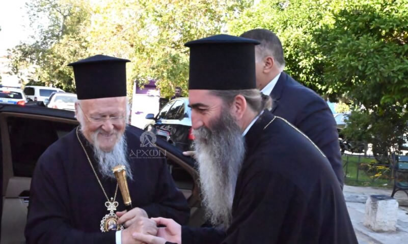 O Patriarca foi acompanhado dos Metropolitas Emmanuel de Calcedônia e Teodoritos de Laodicéia, do Diretor do Escritório de Representação do Patriarcado Ecumênico em Atenas, Panosiol M. Eclesiarca Sr. Aetios, Diretor do Escritório Especial Patriarcal, Rev. Protopresbítero do Trono Ecumênico Sr. Eleftherios Chrysochous, o Hierólogo. Diácono Patriarcal Sr. Epifanios Kamianovych e seus colegas nas secretarias do Patriarcado.