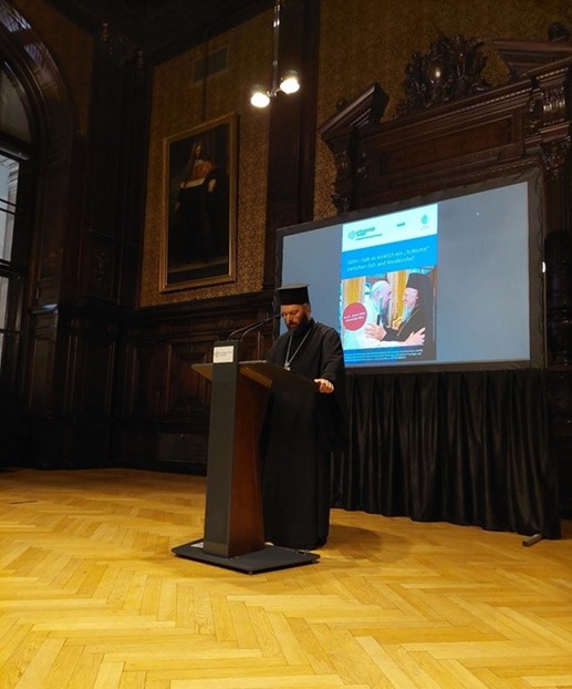 A saudação de Sua Excelência O Metropolita da Áustria Arsênio e Exarca da Hungria e Europa Central também foi muito encorajador. Ele parabenizou a Associação de Professores de História Eclesiástica da Áustria e enfatizou que o envolvimento científico com esta importante questão das relações entre nossas duas Igrejas irmãs tem a maior importância e consequências para milhões de cristãos. O fato de que este Simpósio internacional, a serviço de nossas Igrejas, busque dar a resposta correta ao que aconteceu em 1054 é muito importante, e por isso Sua Eminência Metropolita expressou sua gratidão à Associação de Professores.