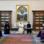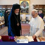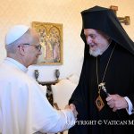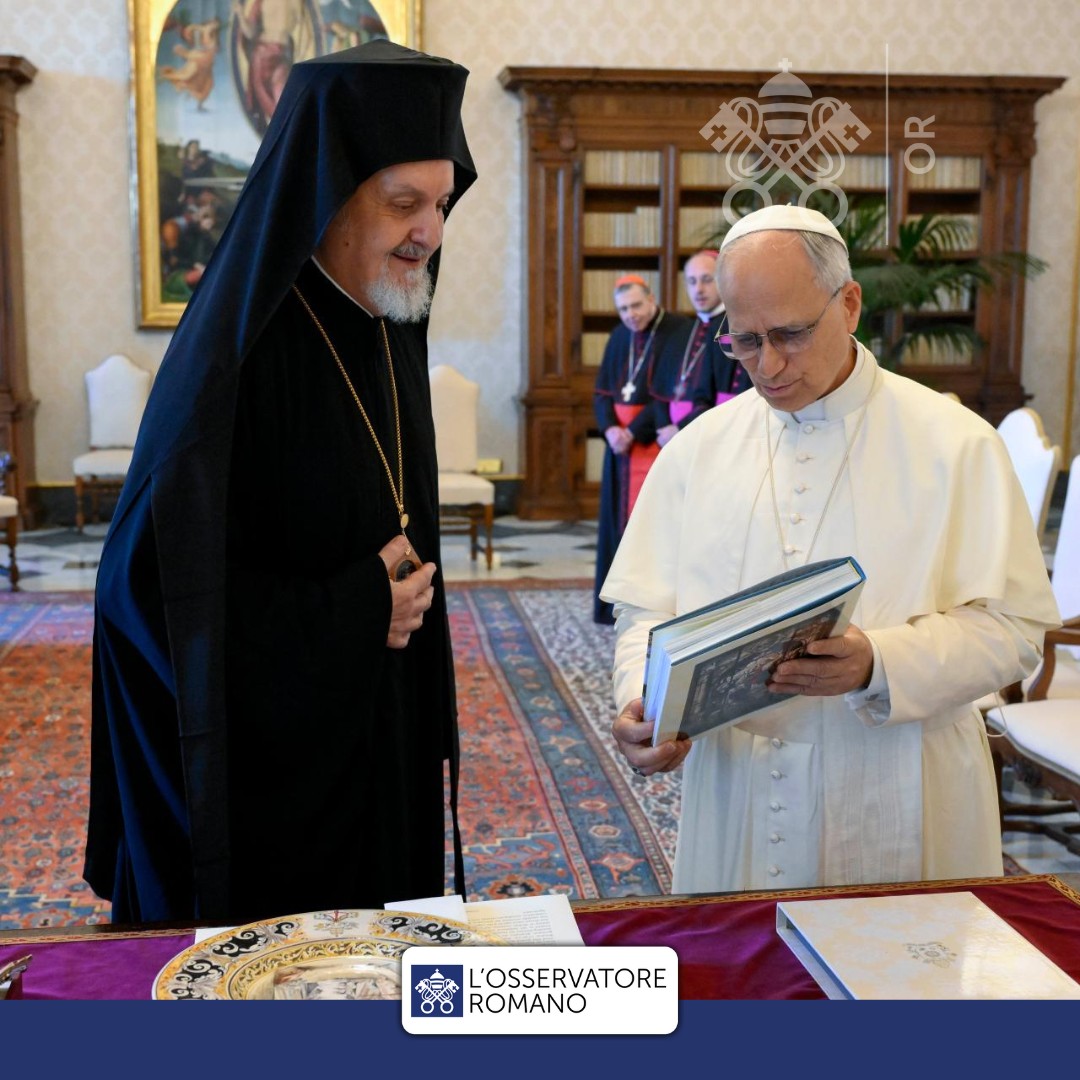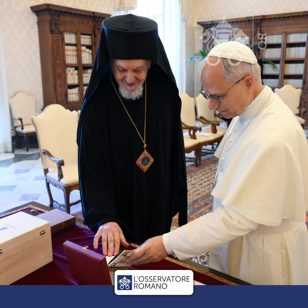 Nossas duas Igrejas-Irmãs têm estado, fiel e esperançosamente, engajadas no importantíssimo “diálogo da caridade” desde o histórico ano de 1964, e comprometidas com o diálogo teológico oficial desde 1980. Este ano marca o significativo 60º aniversário do momentooso gesto de levantamento mútuo das excomunhões de 1054 — um ato corajoso que abriu o caminho para um diálogo sincero, aberto e verdadeiramente fraterno. Ao longo dessas décadas, sete importantes documentos consensuais foram cuidadosamente redigidos e publicados, expressando eloquentemente nossa tradição teológica comum e evidenciando uma notável convergência sobre muitas questões complexas que, por séculos, têm separado ortodoxos e católicos romanos. A Comissão Internacional Mista de Diálogo Teológico entre nossas Igrejas já produziu um conjunto de trabalhos de grande importância e substância, com contribuições inestimáveis de teólogos ilustres de ambas as tradições, como o falecido Jean-Marie Tillard, o Cardeal Walter Kasper e os Metropolitas Anciãos Melíton de Calcedônia e João de Pérgamo, ambos de abençoada memória.