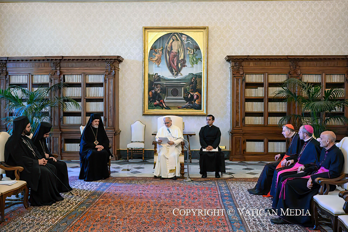 Esse anseio inato e universal por concórdia torna-se ainda mais intenso e pungente diante da dolorosa ladainha de conflitos que marcam tragicamente nosso tempo. Na Ucrânia, continuam a se desdobrar realidades difíceis e dolorosas desde a injusta invasão russa, lançando uma longa sombra de sofrimento. Recordamos também, com o coração pesado, a recente guerra entre Irã e Israel que, embora breve em duração, causou imensa dor e lançou sementes de maior instabilidade. Aproveitamos a ocasião para fazer um apelo urgente pela preservação do status quo do histórico Mosteiro do Sinai, bem como oramos especialmente pela segurança e bem-estar dos cristãos do Oriente Médio. A situação profundamente preocupante e incerta nessa região — especialmente a crise devastadora em Gaza e os persistentes conflitos complexos na região dos Grandes Lagos da África — exigem, com clamorosa urgência, que acordos de paz abrangentes sejam concluídos antes que prazos cruciais se percam na futilidade dolorosa. Essas muitas feridas abertas no corpo da humanidade explicam por que Vosso primeiro cumprimento — “A paz esteja convosco” — foi compreendido de forma tão imediata e ampla não como simples formalidade litúrgica, mas como proclamação fundante de um manifesto pastoral. Sabemos, no entanto, que a verdadeira paz duradoura não é mera cessação de hostilidades ou simples ausência de conflito, mas sim uma tessitura positiva e intrincada de verdade essencial e justiça perene.