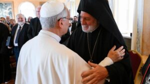 A vossa presença entre nós recorda-nos que a jornada ecumênica não é apenas um esforço teológico, mas sobretudo um chamado espiritual. É necessário retornar a Jerusalém, ao Cenáculo, onde o Espírito Santo desceu e onde o medo se transformou em proclamação. Nesta peregrinação de esperança, que sejais fortalecidos pelo fogo de Pentecostes, levando Cristo a um mundo ferido pela guerra, pela injustiça e pelo desespero.