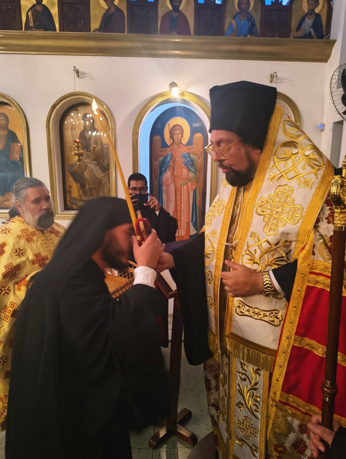 No sábado, 30 de agosto, ao final do Ofício de Vésperas, Sua Eminência Dom Iosif, Arcebispo Metropolitano de Buenos Aires e da América do Sul, presidiu o Ofício de Rasoforia, recebendo o jovem Serafim no monasticismo. No domingo, 31 de agosto, durante a Divina Liturgia Hierárquica, concelebrada com seus bispos auxiliares Dom Irineo de Tropaion e Dom Meletios de Zela, o recém-tonsurado monge foi ordenado diácono, recebendo o nome de Athenágoras.