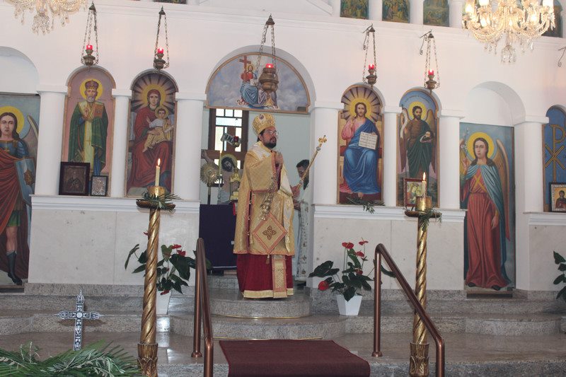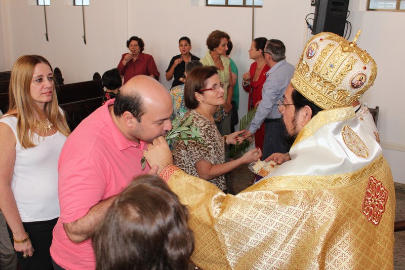 No último sábado, 27 de abril, Dom Iosif visitou a Paróquia São João o Teólogo, em São José, onde concelebrou, com Pe. André e Pe. Pavlos o Ofício de Vésperas. No Domingo, a Divina Liturgia de Ramos teve lugar na Paróquia de São Nicolau de Florianópolis, presidida por Dom Iosif e concelebrada pelos padres André e Pavlos. Após a Liturgia, a comunidade recepcionou Dom Iosif num almoço comunitário. Na segunda-feira, 29, após visita à Capela Bizantina no centro de Florianópolis onde estão guardadas as relíquias de Santa Catarina de Alexandria que foram doadas ao nosso Estado pelo Monastério Ortodoxo de Monte Sinai, Dom Iosif dirigiu-se à Igreja de São Nicolau de Florianópolis, onde a comunidade se reuniu mais uma vez com nosso Bispo auxiliar e seu reitor, Pe. Pavlos, para a celebração do Ofício do Noivo.