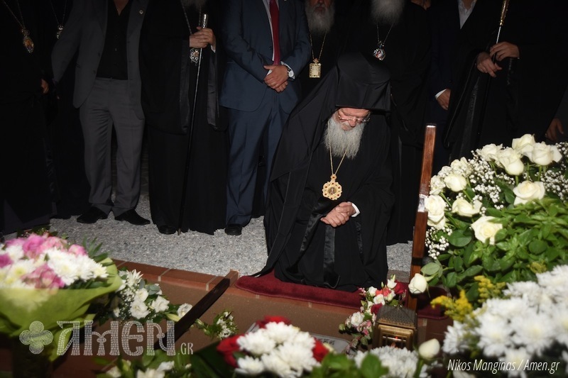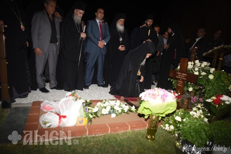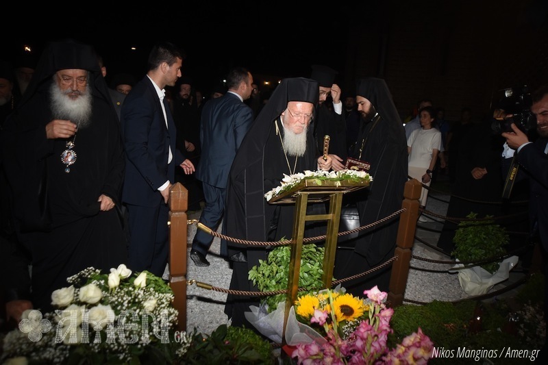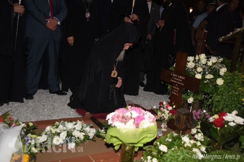 Bartolomeu I, em suas palavras, sublinhou que em janeiro passado, a Igreja-Mãe de Constantinopla, por sugestão e recomendação positiva e unânime dos membros do Santo Sínodo Patriarcal, reconheceu formalmente a santidade de Abba Paísios. Por isso, incluiu seu nome na lista dos santos da Igreja Ortodoxa, determinando que sua festa fosse celebrada anualmente no dia de sua dormição em Cristo, isto é, em 12 de julho. Disse ainda o Patriarca que: “nós tivemos a graça de conhecer um verdadeiro cristão […] um homem de profunda humildade, paciência e amor a Deus”. Expressou ainda sua confiança que “com amor e fé em Deus, os problemas enfrentados atualmente pelos cristãos em todo o mundo serão superados”. “A noite de hoje é um grande marco, pois celebramos a primeira festa memorial de São Paísios que coincide com o atual momento, altamente crítico e crucial para toda a nação grega”. Recordou ainda que “celebrar sua memória é uma consolação; ele que nos assegurava que ‘o que ama a Deus, n’Ele confia e põe sua esperança, tudo possui'”. E, visivelmente emocionado, o Patriarca Ecumênico Bartolomeu I curvou-se e rezou diante do túmulo de São Paísios.