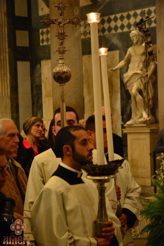 Pela manhã, o Patriarca, com sua comitiva, acompanhado do Cardeal Bertori, participou da Divina Liturgia festiva em honra a São Demétrio na Igreja de São Tiago em Florença. No final, o Patriarca dirigiu a palavra aos presentes, falando sobre a vida de São Demétrio e sobre os esforços que o Patriarcado vem empreendendo para a reabertura da Escola Teológica de Halki, fechada desde 1971. Lembrou ainda da guerra fratricida que se passa no Oriente Médio, onde muitos cristãos padecem o martírio nos tempos presentes.