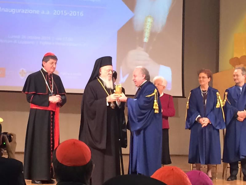 Na noite deste mesmo dia, Bartolomeu I foi recebido na Pontifícia Universidade Sofia, de Florença, que lhe outorgou o título de Doutor Honoris Causa em “Cultura da Unidade. Em seu discurso de agradecimento, o Patriarca lembrou a história do diálogo e o significado teológico da unidade das igrejas. Por fim, recebeu o cumprimento dos cardeais, bispos, autoridades e demais presentes. O Papa Francisco enviou uma mensagem na qual assegurava a sua espiritual proximidade ao amado Irmão Bartolomeu.